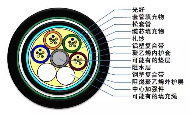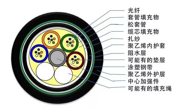 注:柔韌性和抗彎曲性能好中心管式一般還有阻水帶"
