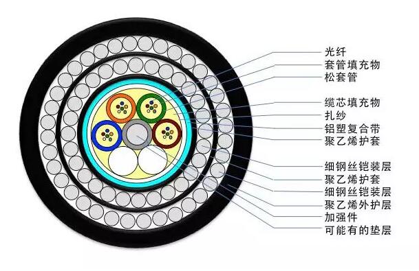 "非金屬加強(qiáng)件、松套層絞、聚乙烯內(nèi)護(hù)套芳綸鎧裝、聚乙烯外護(hù)套"