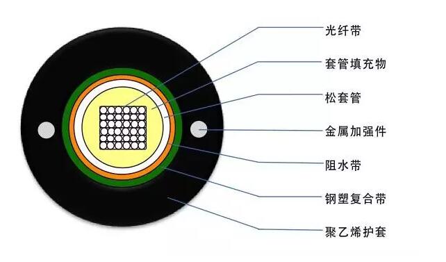"室外用、光纖帶、中心管式、油膏填充夾帶鋼絲的鋼帶-聚乙烯護(hù)套"