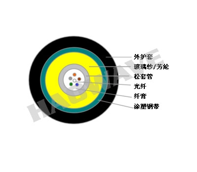 高承張芳綸紗周邊加強阻水油膏填充保護光纖,防水性能優(yōu)良,再用一層雙面涂塑鋼帶縱包